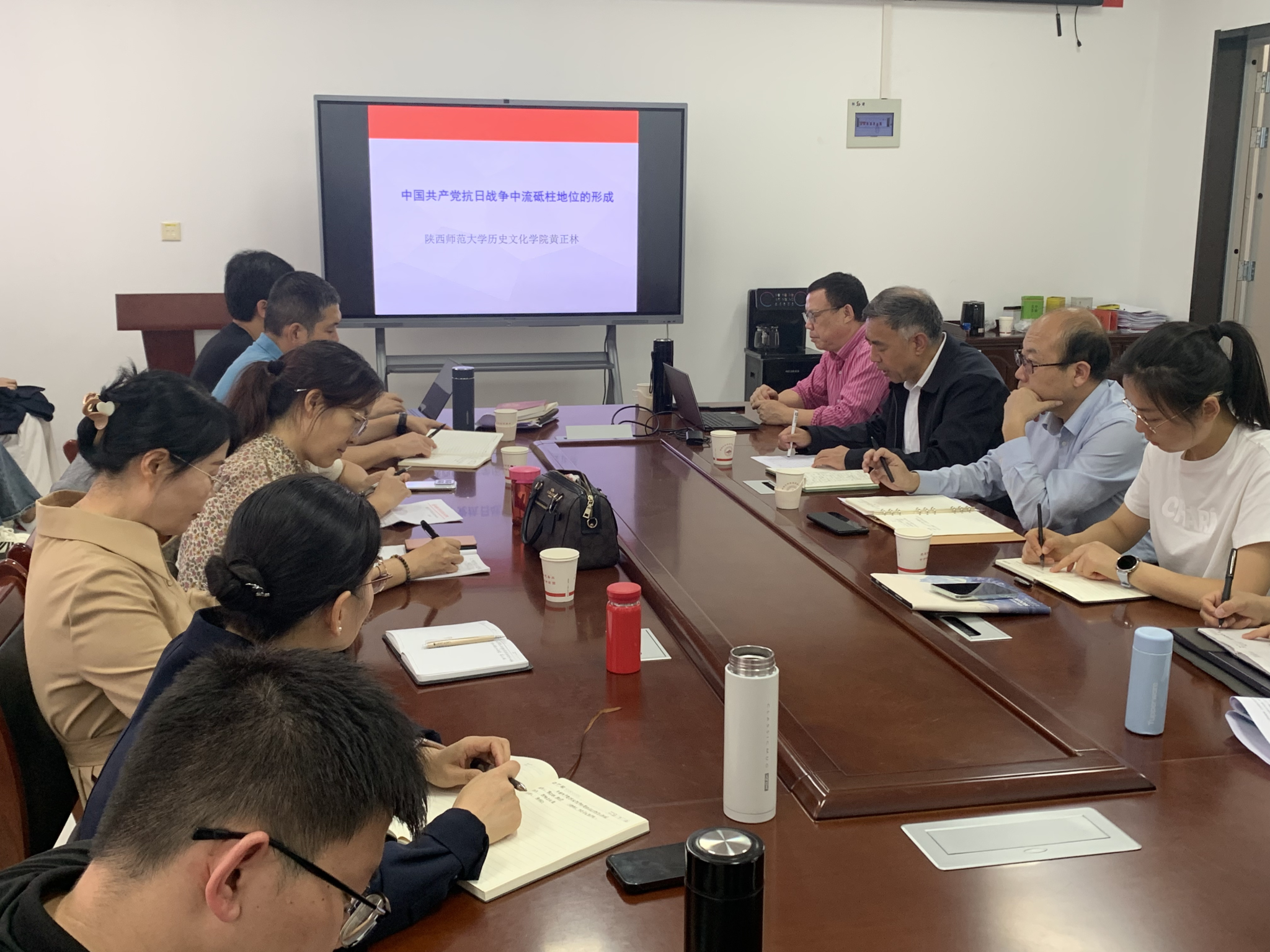 下午2时30分,教研室成员又聆听了我院特聘教授陕西师范大学黄正林老师所作的题为《中国共产党抗日战争中流砥柱的形成》的学术报告。黄教授从中国共产党力主抵抗日本侵略符合中华民族的根本利益、对抗日救国方针的探索和形成、中国共产党开创华北抗日战场的新局面、敌后战场成为中国抗战的重要组成部分等四个方面,论述了中国共产党中流砥柱作用的形成及发挥。黄正林教授的报告史料详实、论证充分,为教研室老师带来了一场精彩的学术盛宴,使老师们对抗日战争历史有了更加深入的理解和认识。