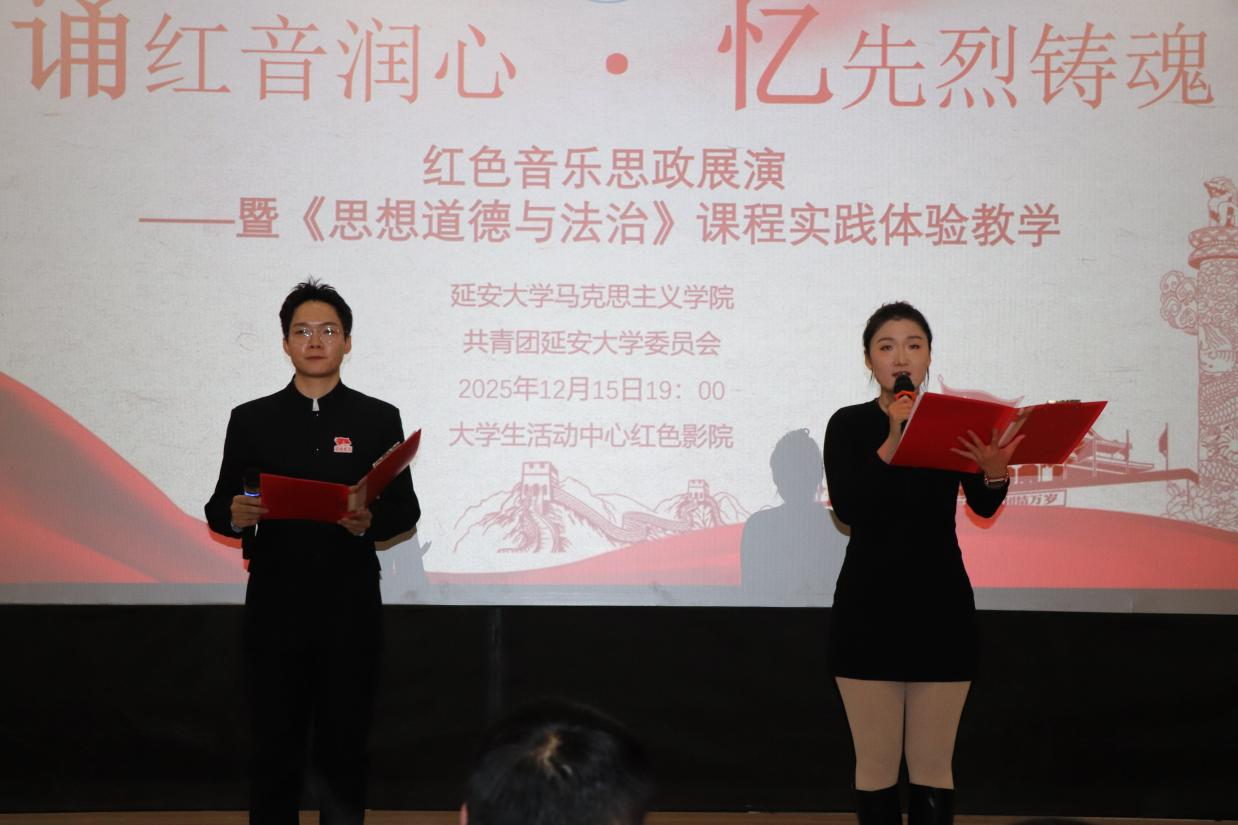 12月15日19时,suncitygroup太阳集团大学生活动中心红色影院内。以“诵红音润心·忆先烈铸魂”为主题的红色音乐思政展演暨《思想道德与法治》课程实践教学活动精彩启幕。本次活动由太阳集团tyc5997、共青团suncitygroup太阳集团委员会联合主办,以红色音乐为载体,将思政课程与艺术实践深度融合,让师生在经典旋律中缅怀先烈、筑牢信仰。
