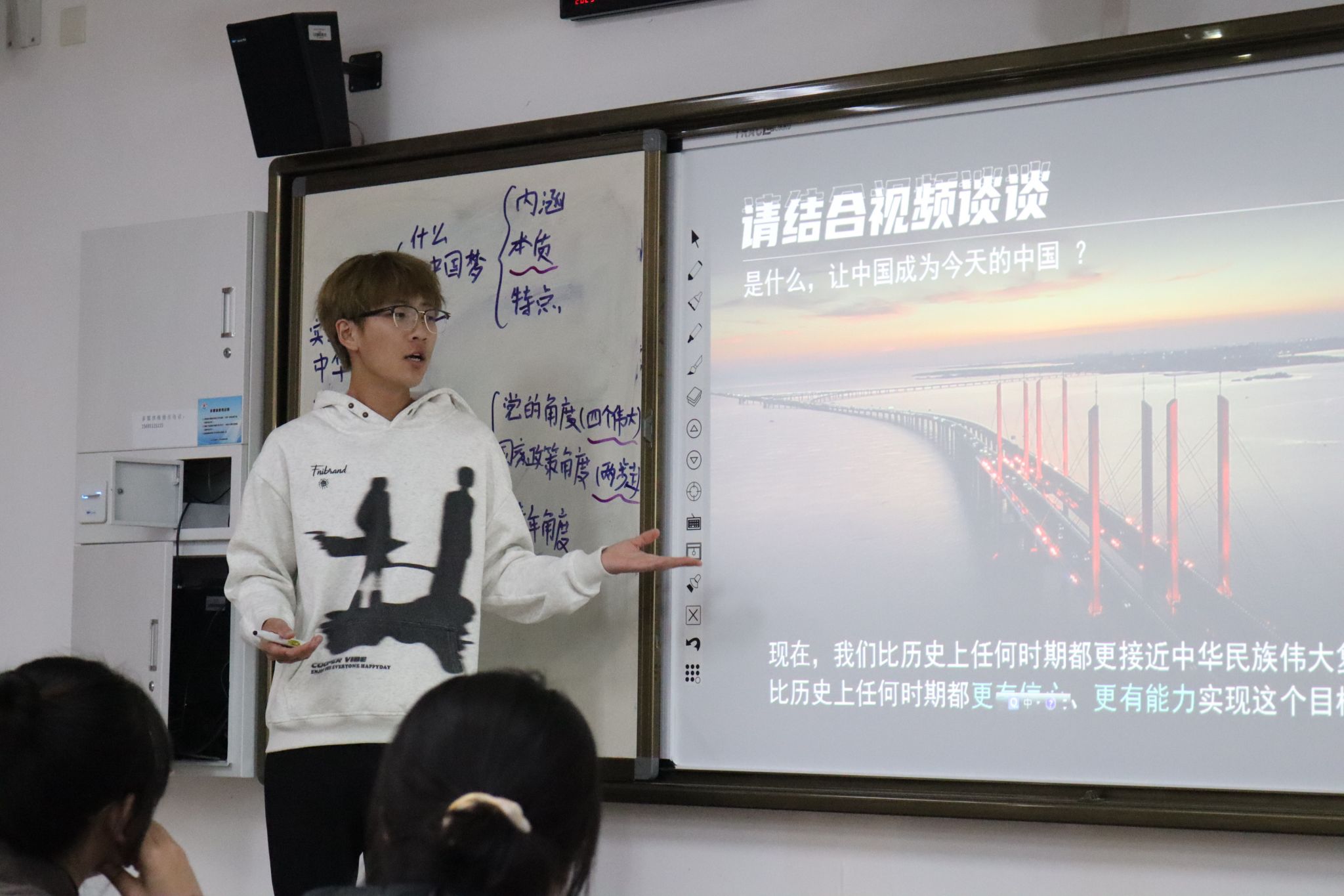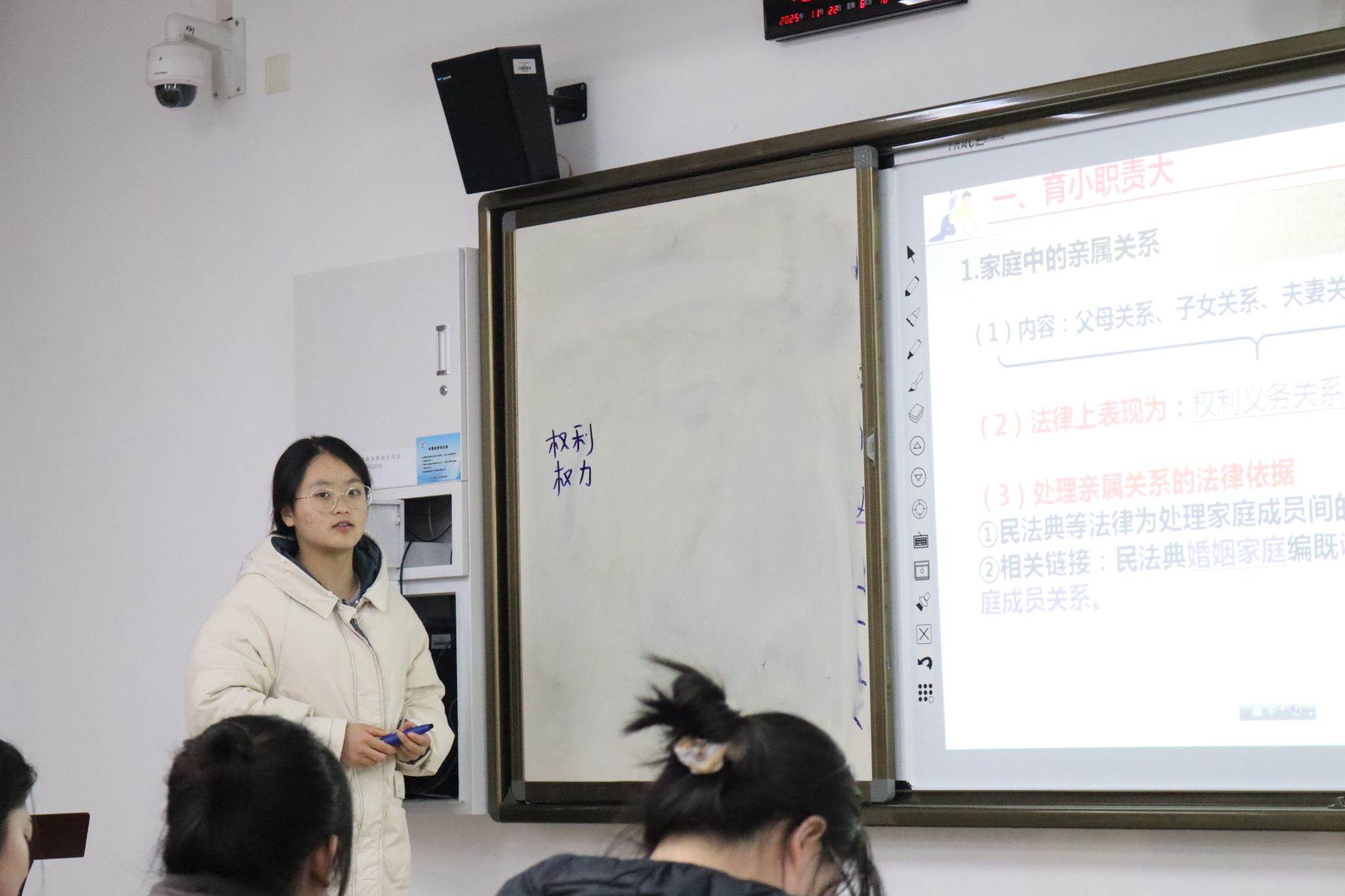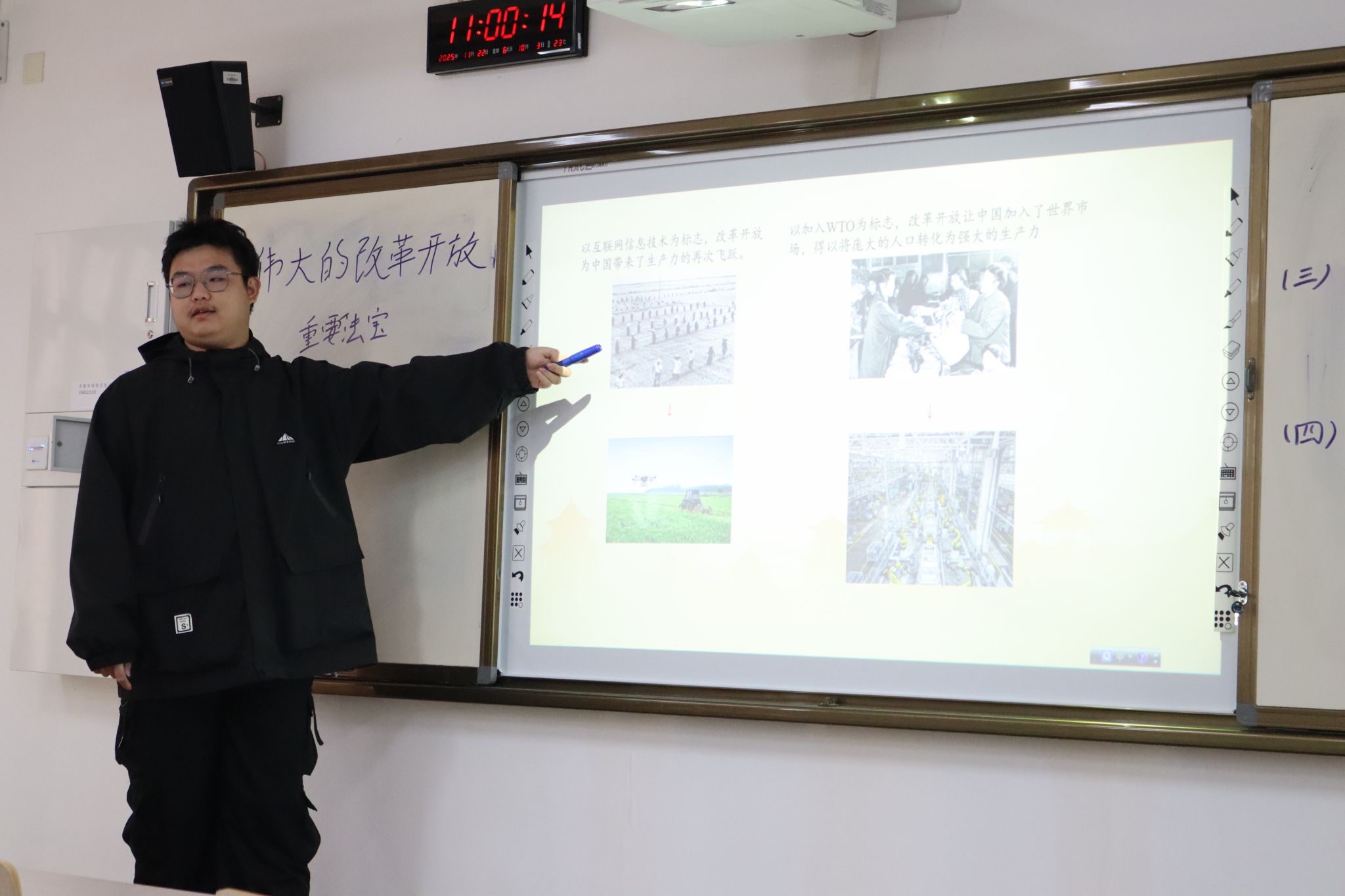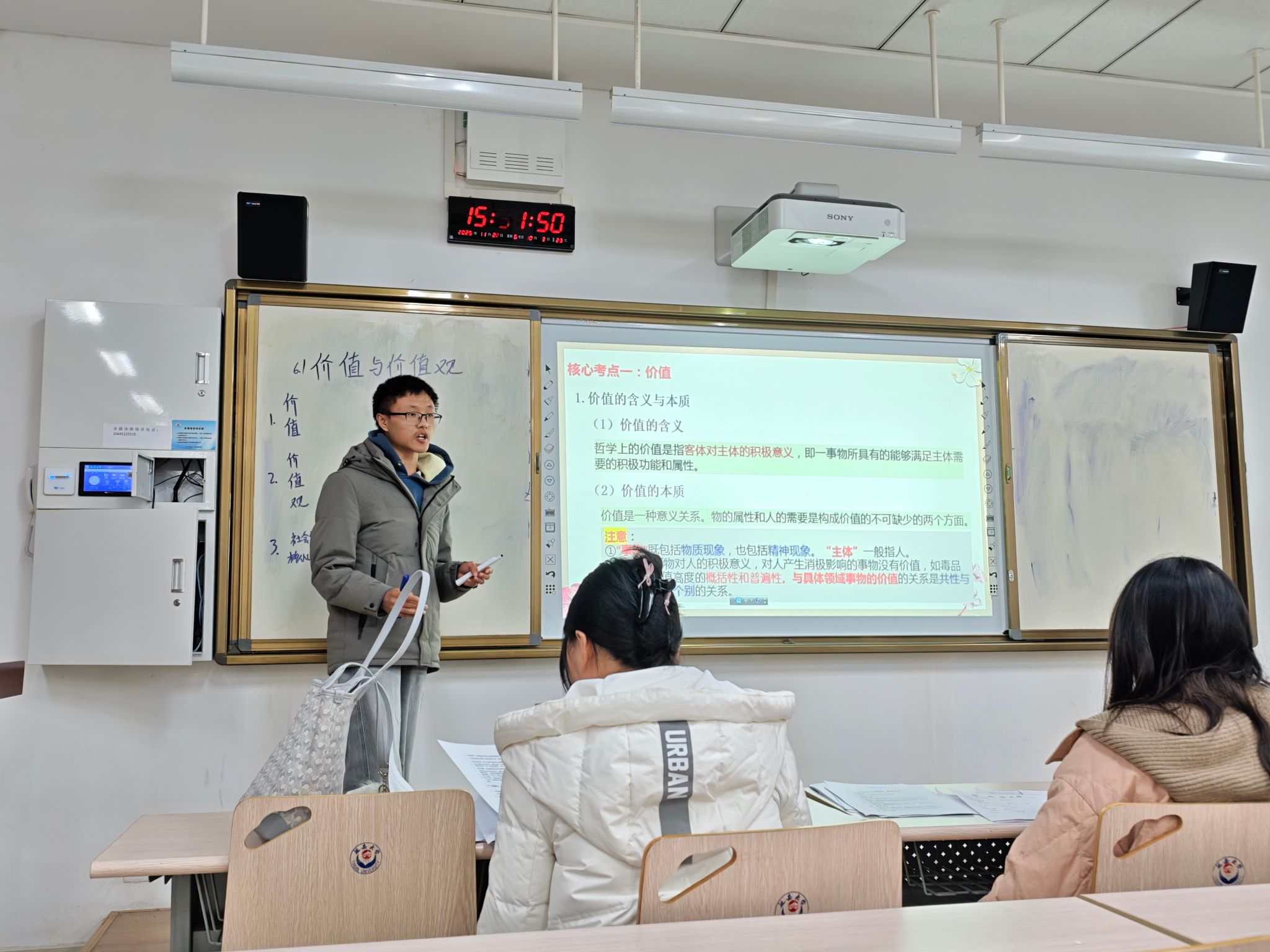 为增强理论与实践的融合,明确师范生的培养定位,有效提升师范生的教学实操能力,我院思政25级分两组分别于11月22日上午和下午在2101教室举行了教学技能实操大比拼活动。马克思主义理论和学科教学(思政)部分硕士研究生全程参与指导。活动由思政25级于欣冉同学主持,全体同学全程参与。