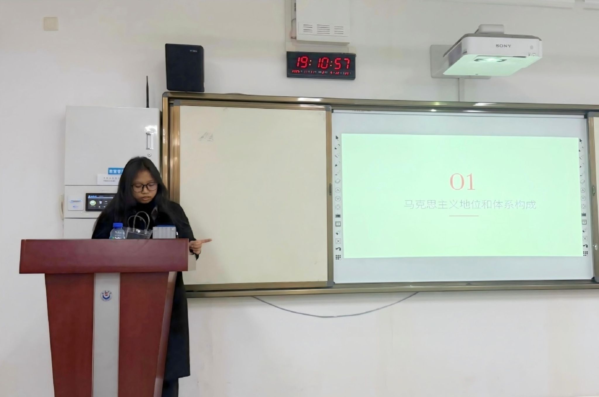 罗阿丽的汇报围绕《我的马克思主义观》的上篇展开。她提出,在这部分李大钊主要介绍马克思主义理论体系构成。李大钊提出马克思主义理论分历史论、经济论、政策论三部分,阶级斗争是串联三部分的关键。马乐主要围绕《我的马克思主义观》的下篇展开。下篇核心议题是马克思主义的革命路径,即在经济论基础上,强调则以阶级斗争为核心,通过革命推翻资本主义,实现生产资料公有,进而确立社会主义制度。夏铭阳一重点解读了《再论问题与主义》的核心观点,如何平衡社会根本改造与具体问题解决的关系,进而强调要从问题与主义的辩论中汲取智慧,用于观察和思考当下的社会与发展,寻求主义与问题的辩证统一。